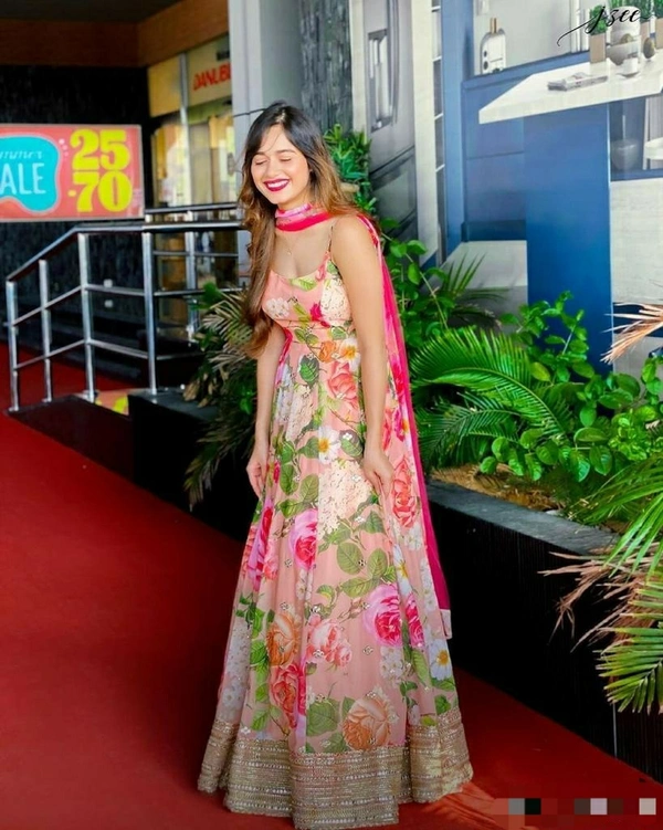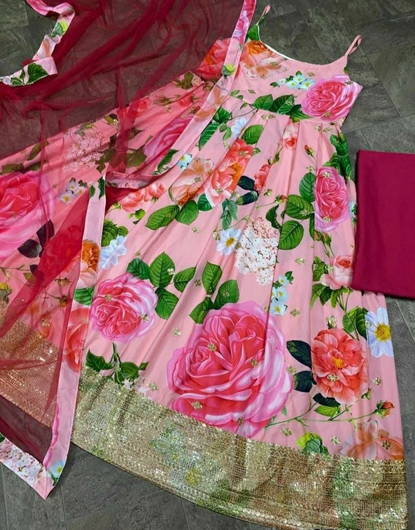 👉Gown Work : Digital Print & Sequences Embroidery Work