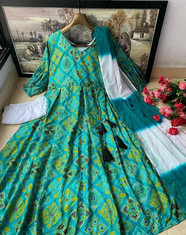 š Gown Fabric : Butter Silk š Gown Work : Digital Print š Gown Inner : Silk š Gown Size : Up to XXL š Gown Type : Full- Stiched š Gown Length : 54" š Dupatto Fabric : Georgette š Dupatto Work : Digital Print š Pant Fabric : Butter Silk š PantType:- Full Stiched