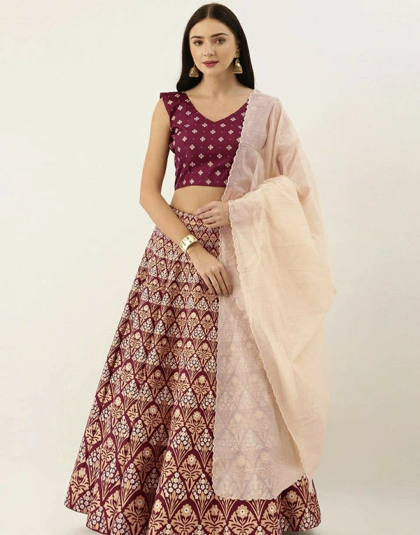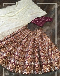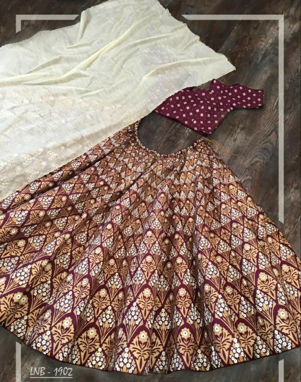 👉Lehenga Work : Weaving Design and FoilPrint Border In Bottom (Samosa Lace Border)