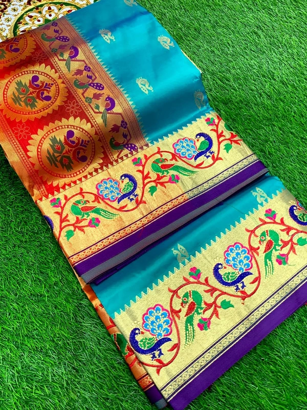 Embroidery Paithani* *Brocade Border* *Shoulder Butti* *Contrast Blouse*