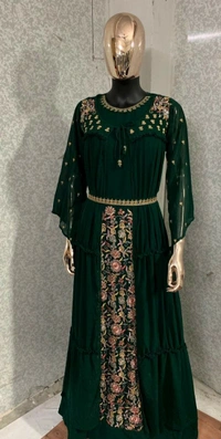 👉Top :- Faux Georgette 👉Inner :- Santoon 👉Wrok :- Embroidry 👉Length :- Max up to 57 👉Jacket length : up to 55 👉Size :- Max up to 48 👉Type :- Semi Stitched 👉*Separate Belt * 👉Weight :- 1 kg