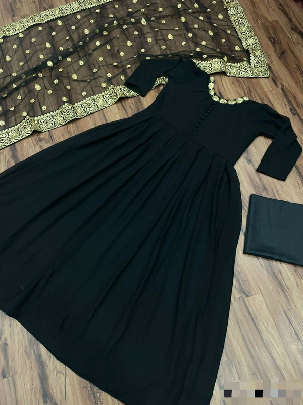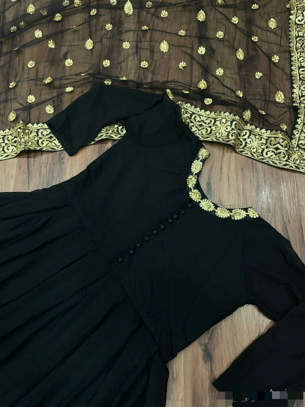 👉Top Fabric :Gorgette with inner 👉Top Flair :- 3 Mtr 👉Top Stiching type :Up to 42 (Full-Stiched) 👉Pant Fabric :Crep 👉Pant Size :2M (Unstiched) 👉Dupata Fabric :Soft Net 👉Dupata Work :Embroidery work 👉Dupata Size : 2 MTR