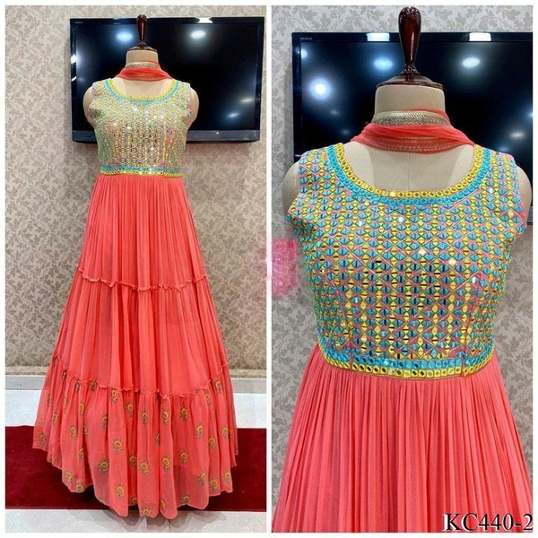 πŸ‘‰ Gown Fabric : Georgette πŸ‘‰ Gown Work : Embroidery Work πŸ‘‰ Gown Inner : Silk πŸ‘‰ Gown Length : 52" inch πŸ‘‰ Gown Flair :- 6" mtr ( Ruffle Flair ) πŸ‘‰ Gown Size : Up To 44" Free Size πŸ‘‰ Gown Type : Full-Stich πŸ‘‰ Dupatta Fabric : Georgette πŸ‘‰ Dupatta Work : Lace Border πŸ‘‰ Dupatta Size : 2-2.10" mtr πŸ‘‰NOTE :- SHORT SLEEVE ATTACH INSIDE GOWN