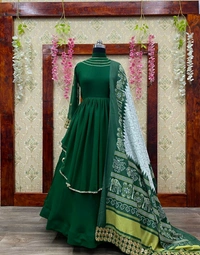 👉Gown Fabric :Georgette 👉Gown Work :Embroidery Work 👉Gown Inner :- Silk 👉Gown Size : 42" + 2" Margin 👉Gown Lenght : 56 👉Gown Type : Full-Stich 👉Bottom :-no 👉Dupatta Frabic :Vichitra SIlk 👉Dupatta Work: Embroidery work & Print 👉Dupatta Length : 2.2 mtr