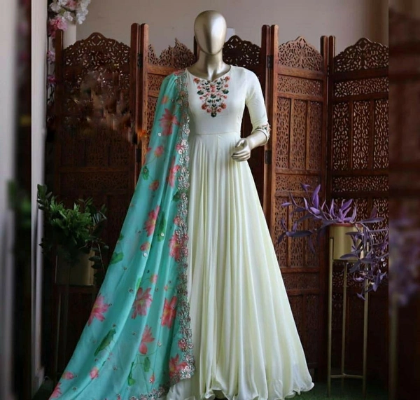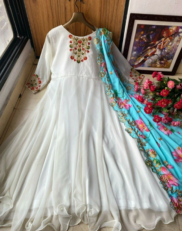 š Gown Fabric : Georgette š Gown Work : Embroidery & Fancy Wire Stich š Gown Inner : Silk š Gown Size : Up to XXL š Gown Type : Full- Stiched š Gown Length : 50" š Dupatto Fabric : Butter Silk š Dupatto Work : Embroidery