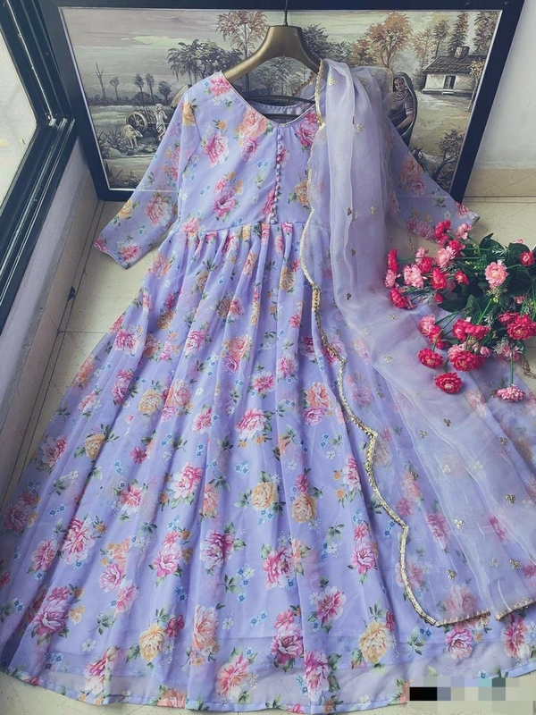 👉Gown Fabric :Georgette 👉Gown Work : Digital Prnit 👉Gown Inner : Silk 👉Gown Size : Up to XXL 👉Gown Type : Full-Stich 👉Gown Length : 54" 👉Dupatta Fabric :Organza 👉Dupatta Work :- Lace Border 👉Dupatta Size : 2.20 MTR