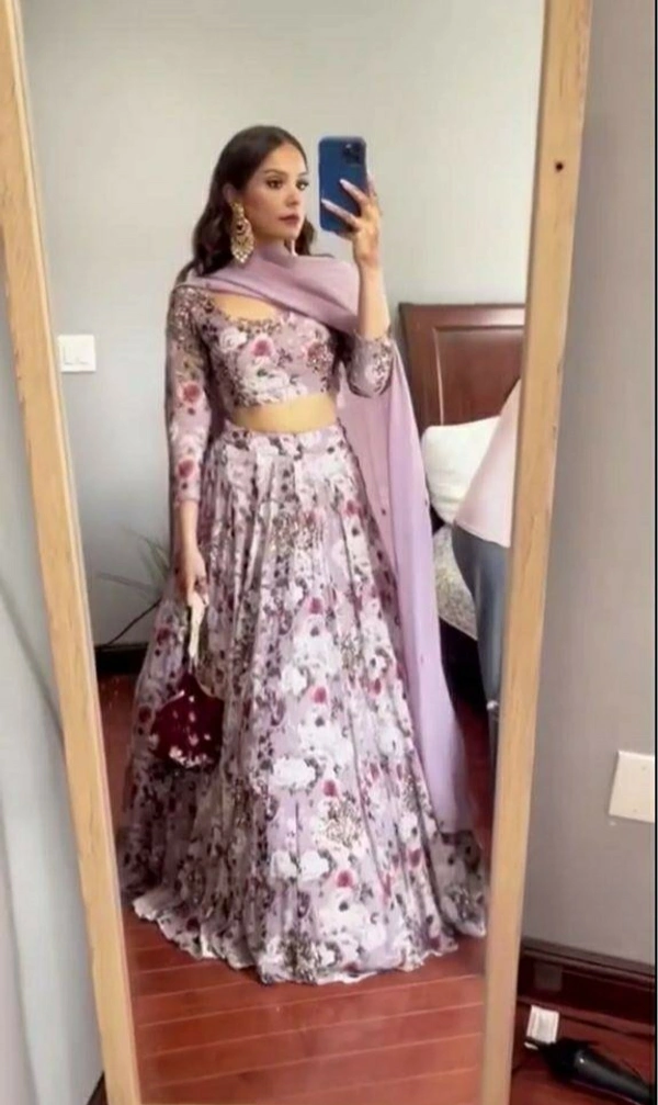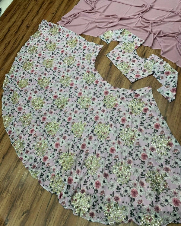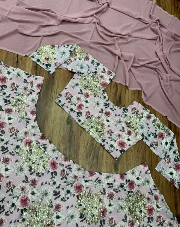 👉Lehengha work :-Digital print &Embroidery with Sequnce