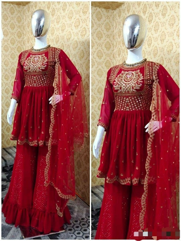 👉Top Fabric : Georgette 👉Top Work : 5mm Sequence Embroidery Work 👉Top Inner : Micro Cotton 👉Top Length : 36" 👉Top Flair :- 2.5 Mtr 👉Top Size : Up to 42" 👉Top Type : Full-Stich 👉Plazzo Fabric : Georgette 👉Plazzo Work : Sequence Embroidery Work 👉Plazzo Inner : Micro Cotton 👉Plazzo Length : 42" 👉Plazzo Size : Up to XXL 👉Plazzo Type : Full-Stich 👉Dupatta Fabric : Soft Butterfly Net 👉Dupatta Work : Embroidery Work 👉Dupatta Size : 2.10 MTR