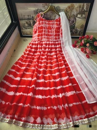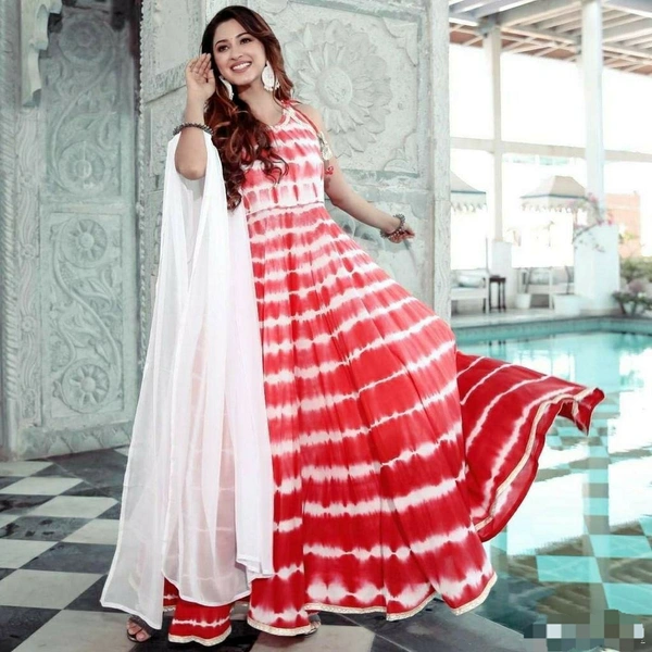 👉Gown Fabric :Georgette 👉Gown Work : Digital Prnit 👉Gown Inner : Silk 👉Gown Size : Up to XXL 👉Gown Type : Full-Stich 👉Gown Length : 54" 👉Dupatta Fabric :Georgette 👉Dupatta Size : 2.20 MTR