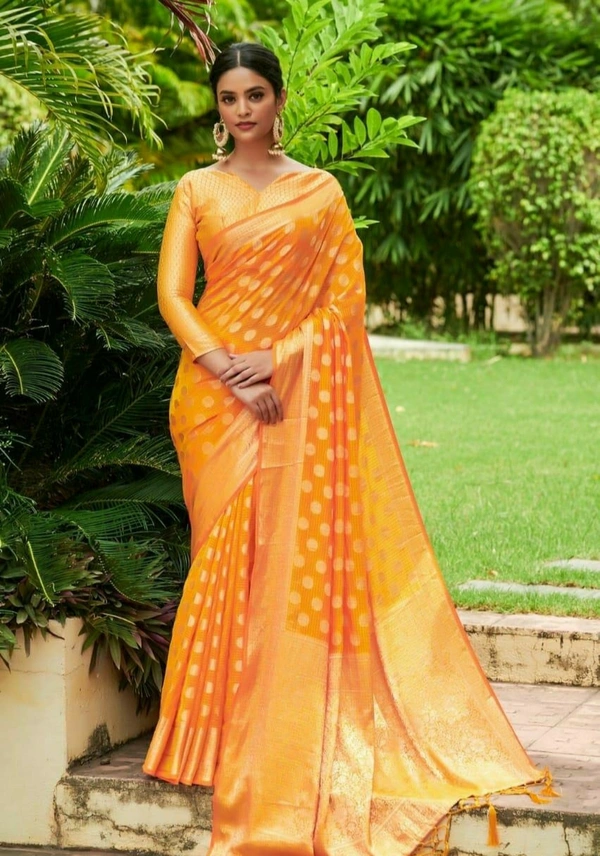 👉Saree Fabric : Jany Chiffon 👉Saree Work : Jari Weaving 👉Saree Size : 5.50 MTR 👉Blouse Fabric : Running 👉Blouse Work :Jacquard 👉Blouse Size : 0.80 MTR