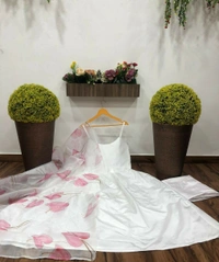 👉Top Fabric :Tafeta silk with inner 👉TopLength.:- 53" 👉Top Stiching type :Up to 40 (Full-Stiched) 👉Pant Fabric :Shantoon 👉Pant Size :2M (Unstiched) 👉Dupata Fabric :Organza silk 👉Dupata Work :Digital print 👉Dupata Size : 2 MTR