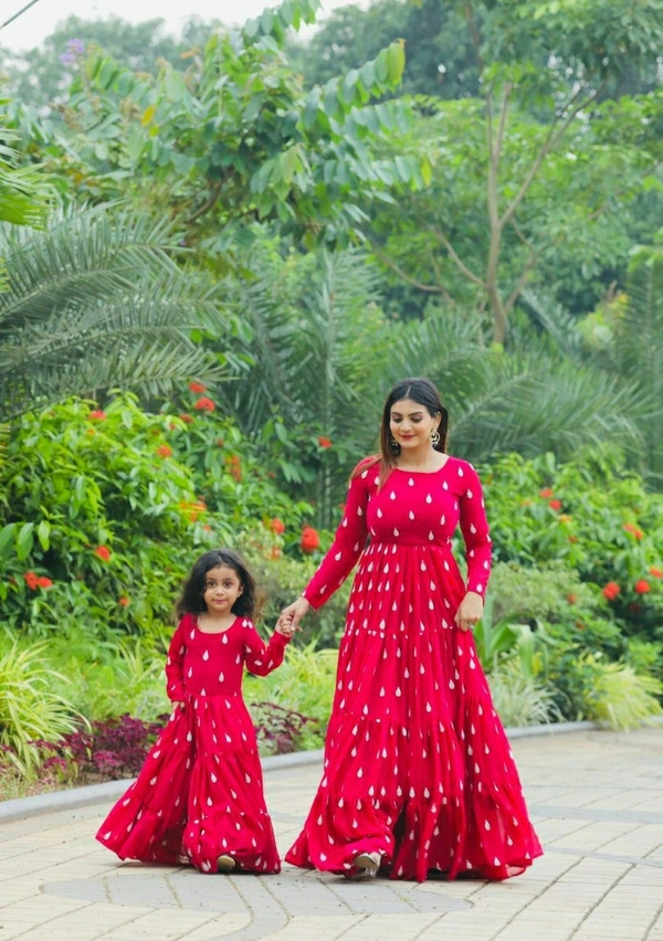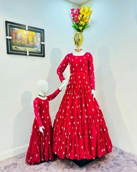 💁♀️ * MOTHER* 💁♀️ 👉Gown Fabric : Georgette 👉Gown Work : Embroidery & Ruffle Work 👉Gown Inner : Micro Cotten 👉Gown Flair :- 16 Mtr 👉Gown Length : 58" 👉Gown Size : L ,XL ,XXL 👉Gown Type : Full-Stich 👉👶 DAUGHTERS👶 👉Gown Fabric : Georgette 👉Gown Work : Embroidery & Ruffle Work 👉Gown Inner : Micro Cotten 👉Gown Flair :- 12 Mtr 👉Gown Length : 35-40" 👉Gown Size : 28/32 👉Gown Type : Full-Stich 👉WEIGHT:-1.5 KG