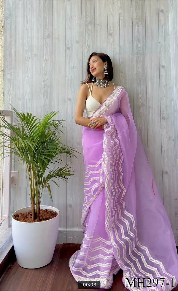👉Saree Fabric : Premium Organza 👉Saree Work : thread& zari work border with beautiful work on both side 🥰 👉Saree Size : 5.50 MTR 👉Blouse Fabric : sattin silk 👉Blouse Size : 0.80 MTR