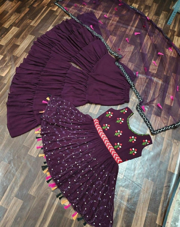 👉Top Fabric : Fox Georgette 👉Top Work : EmbroideryWork & Border Latkan 👉Top Inner : Micro Cotton 👉Top Length : 35" 👉Top Size : Up to 42" 👉Top Type : Full-Stich 👉Plazzo Fabric : Georgette 👉Plazzo Work : 3 Layer flair 👉Plazzo Inner : Micro Cotton 👉Plazzo Length : 40" 👉Plazzo Size : Up to XXL 👉Plazzo Type : Full-Stich 👉Dupatta Fabric : Butter Fly 👉Dupatta Work : Latkan & Less Border 👉Dupatta Size : 2.10 MTR