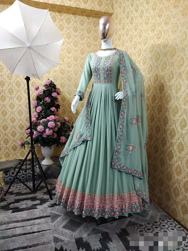 👉Top Fabric : Viscos Fox Georgette 👉Top Work : Embroidery Work 👉Top Inner : Micro Cotton 👉Top Length : 55" 👉Top Flair : 3 MTR 👉Top Size : Up To 42" Free Size 👉Top Type : Full-Stich 👉Bottom Fabric : Micro Cotton 👉Bottom Type : un-Stitch 👉Dupatta Fabric : Fox Georgette 👉Dupatta Work : Embroidery Less Border 👉Dupatta Size : 2.10 MTR